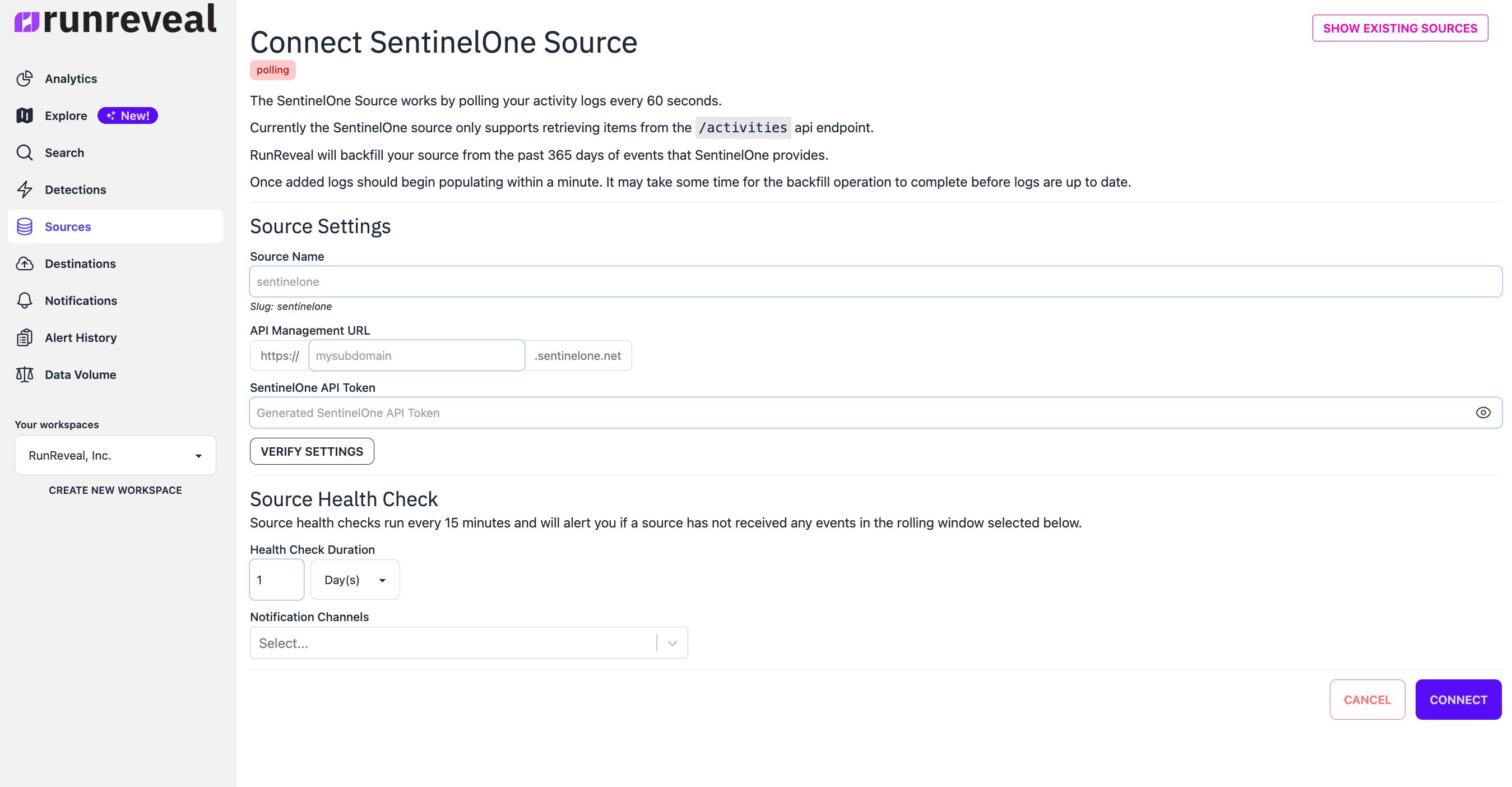 RunReveal will backfill your source from the past 365 days of events that SentinelOne provides.